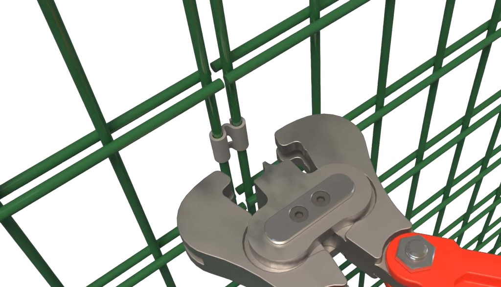 Ручной клипсатор предназначен для соединения металлических прутков сетчатых заборов, габионов и других сопрягаемых конструкций. Данный скобообжимной инструмент подходит для работы с прутками диаметром от 3 до 6 мм и имеет ширину канавки для металлической полосы 6 мм.