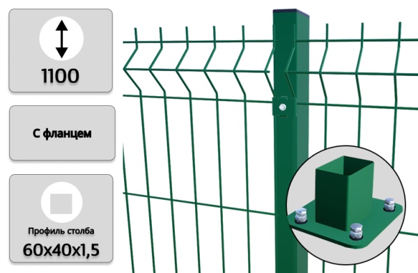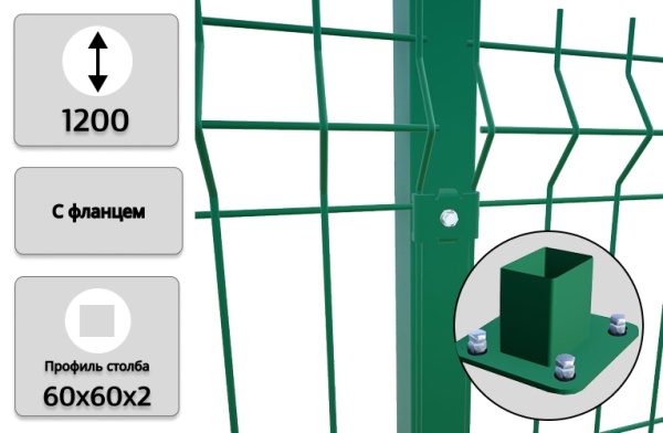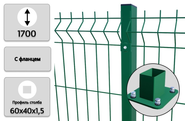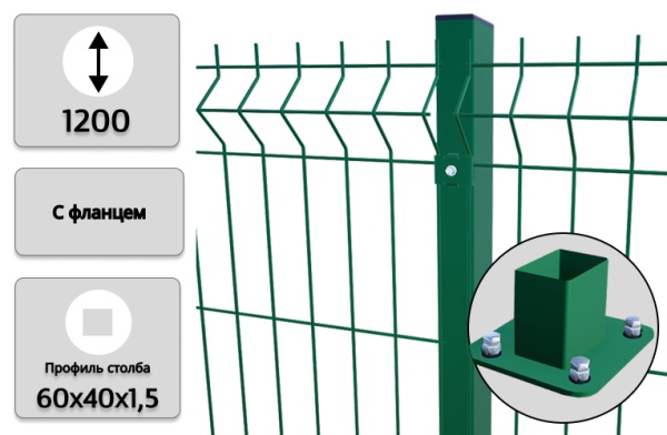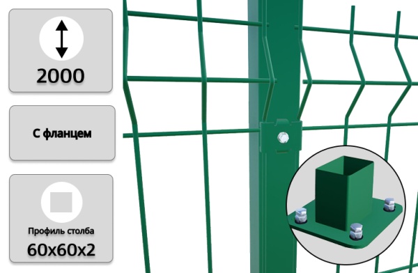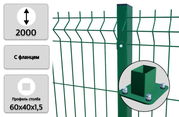 В случае установки ограждения на бетон или сваи используются столбы из металла с насадкой-фланцем. Если выбрано бетонирование, они поставляются без фланцев и их длина подбирается в зависимости от глубины посадки.