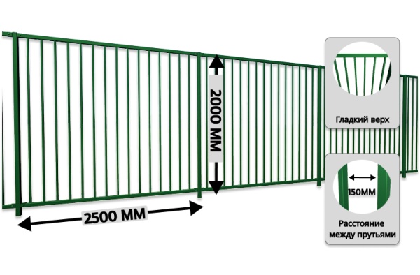Расстояние между элементами горизонтального профиля разработано с учетом обеспечения безопасности детей школьного и младшего возраста. Проникновение и застревание головы ребенка в конструкции исключено.