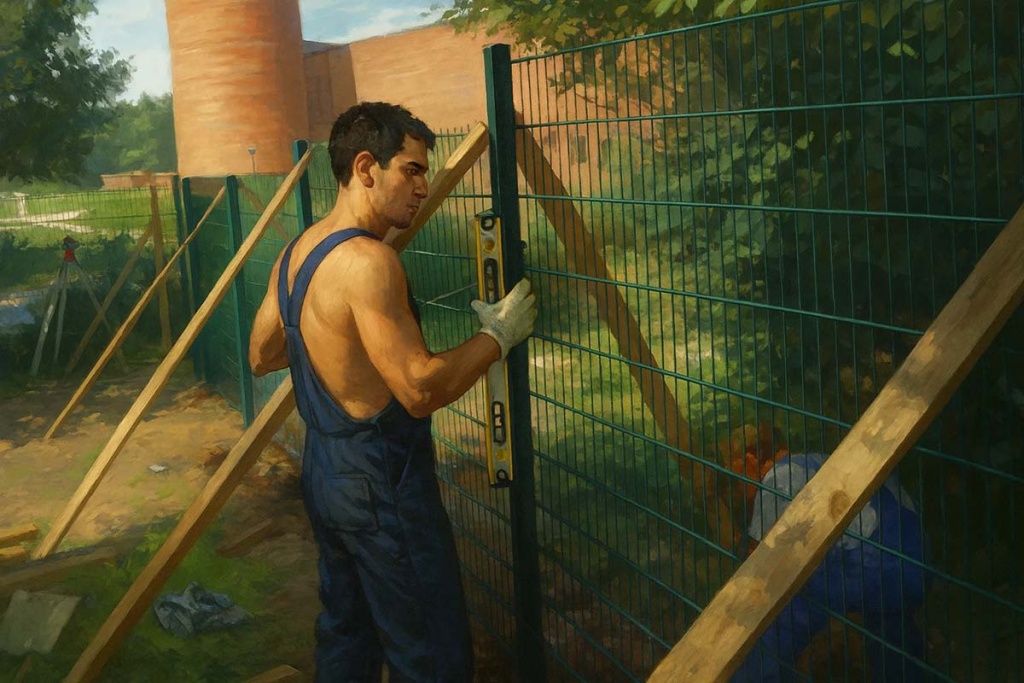 Работа в одиночку требует больше времени, терпения и осторожности. Несмотря на существование полезных приёмов, монтаж забора — это процесс, где физически сложно одновременно удерживать тяжелую деталь, выравнивать её и фиксировать.
